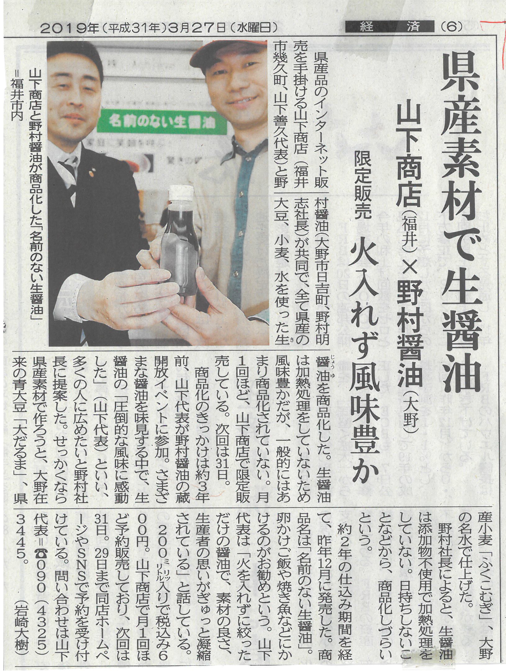 福井県大野市在来大豆「大だるま」を2年熟成で搾っただけの生醤油で作った