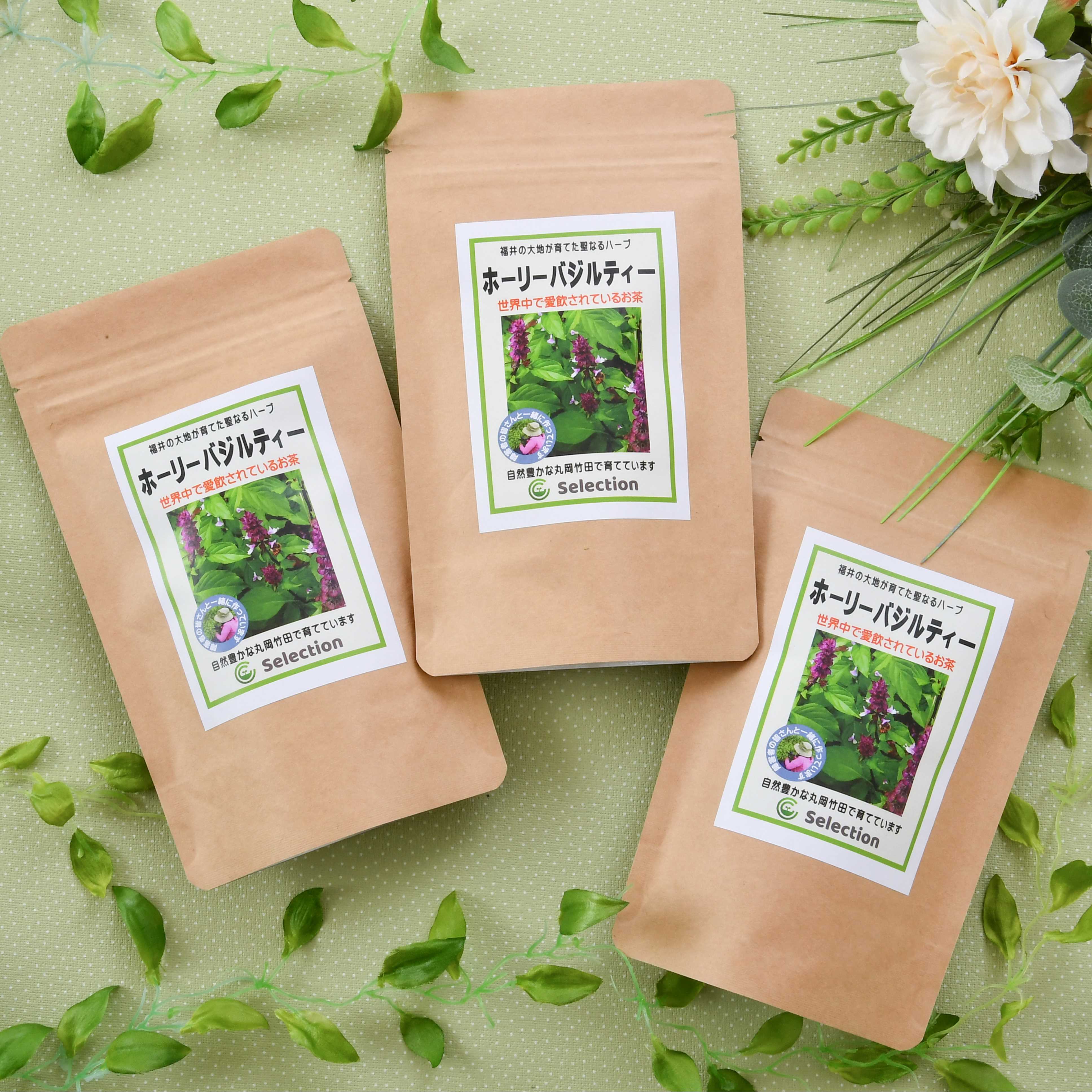 福井県坂井市竹田地区、標高の高い山の中で育てたホーリーバジルをお茶にしました。
